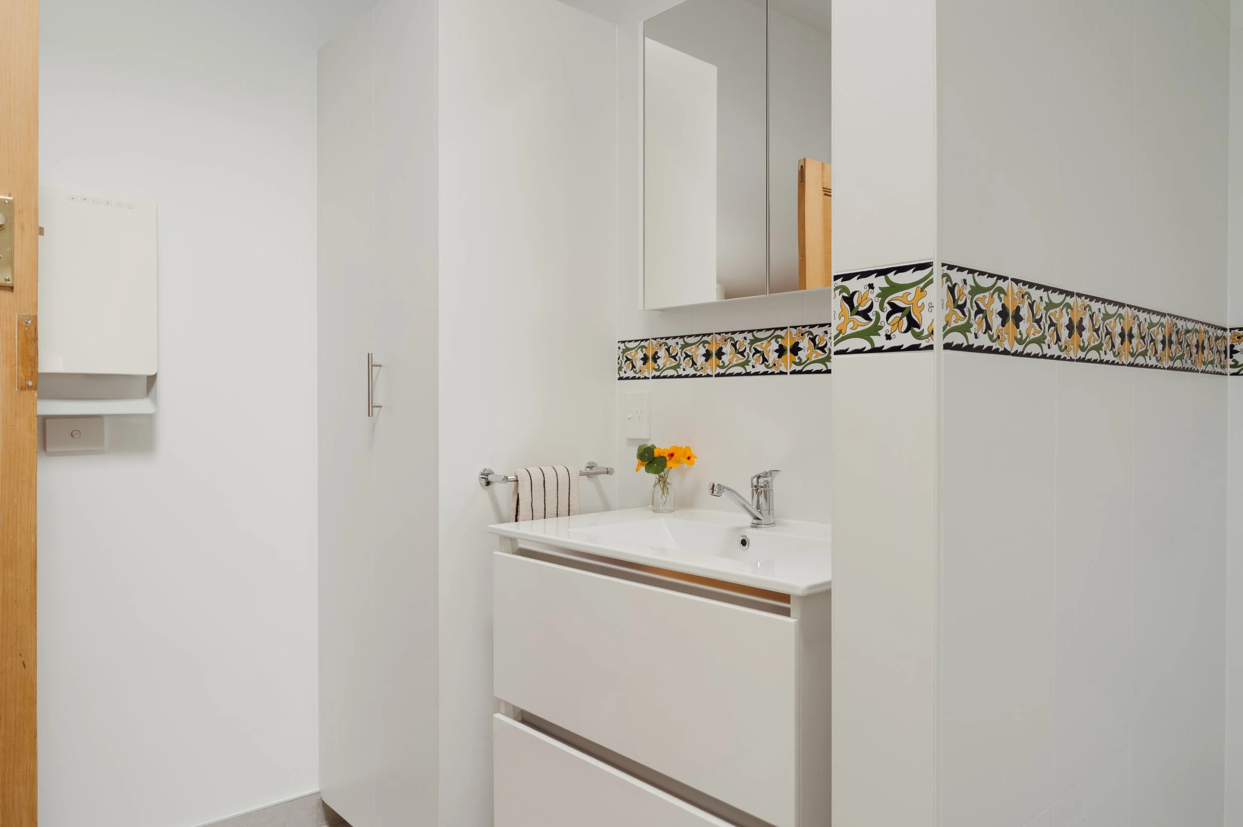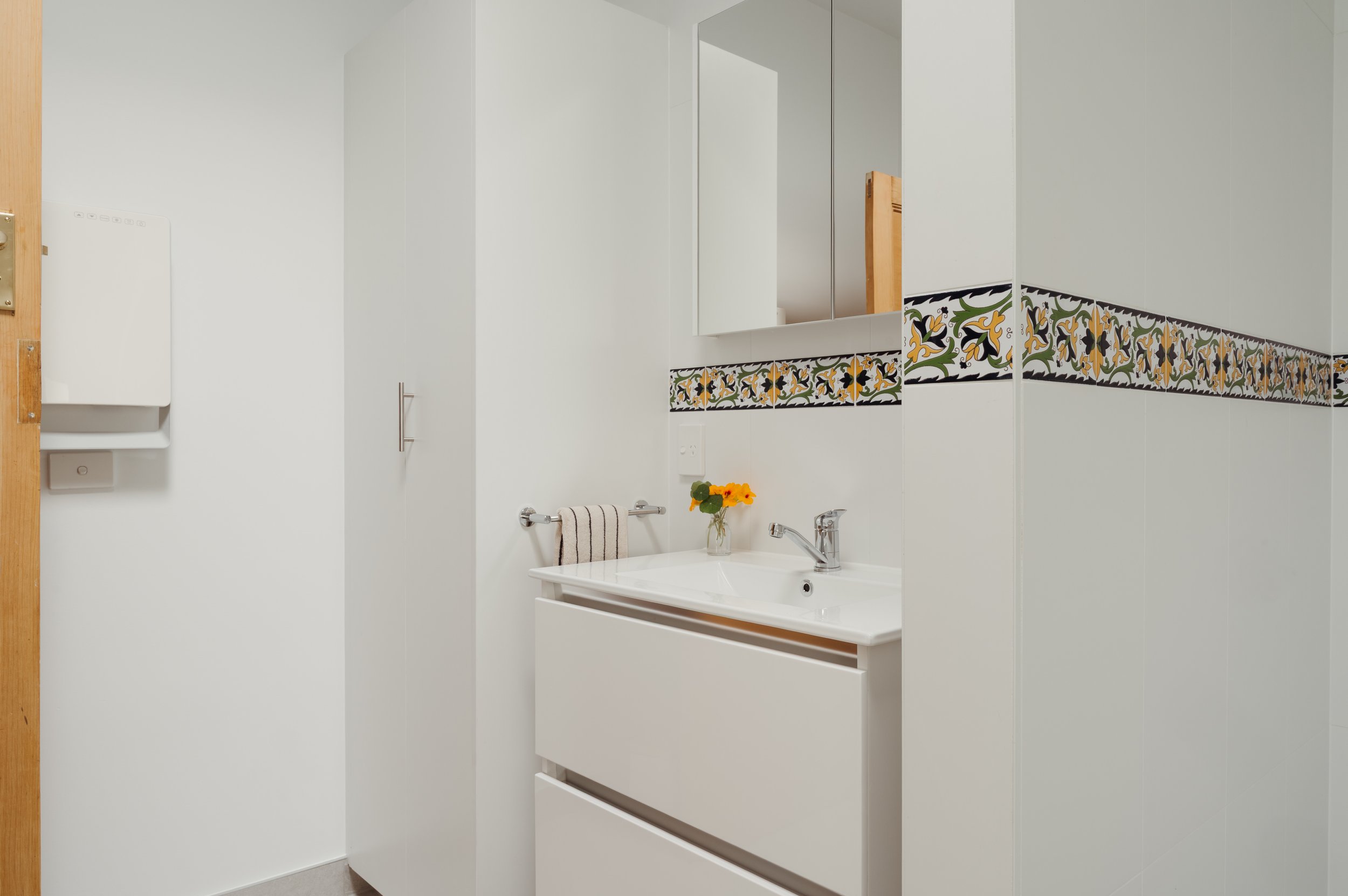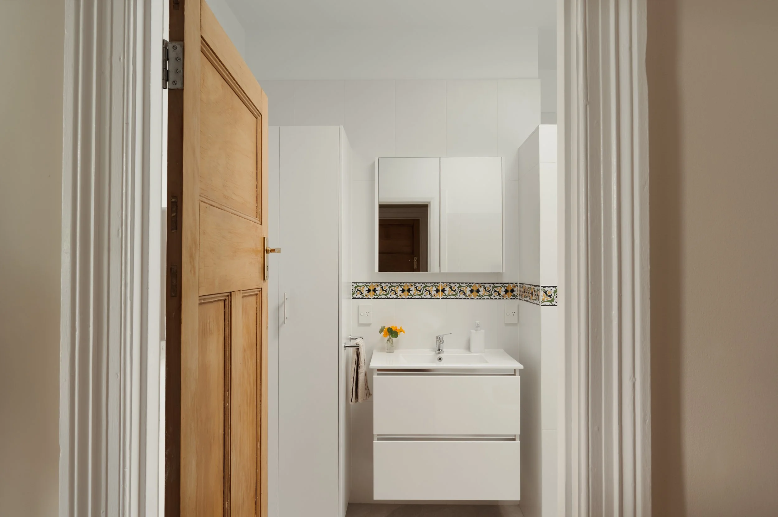 The room was carefully stripped back and reconfigured to support its new function. Working around a wardrobe that protruded into the room, constructing a nib wall and custom joinery for maximising available storage.
