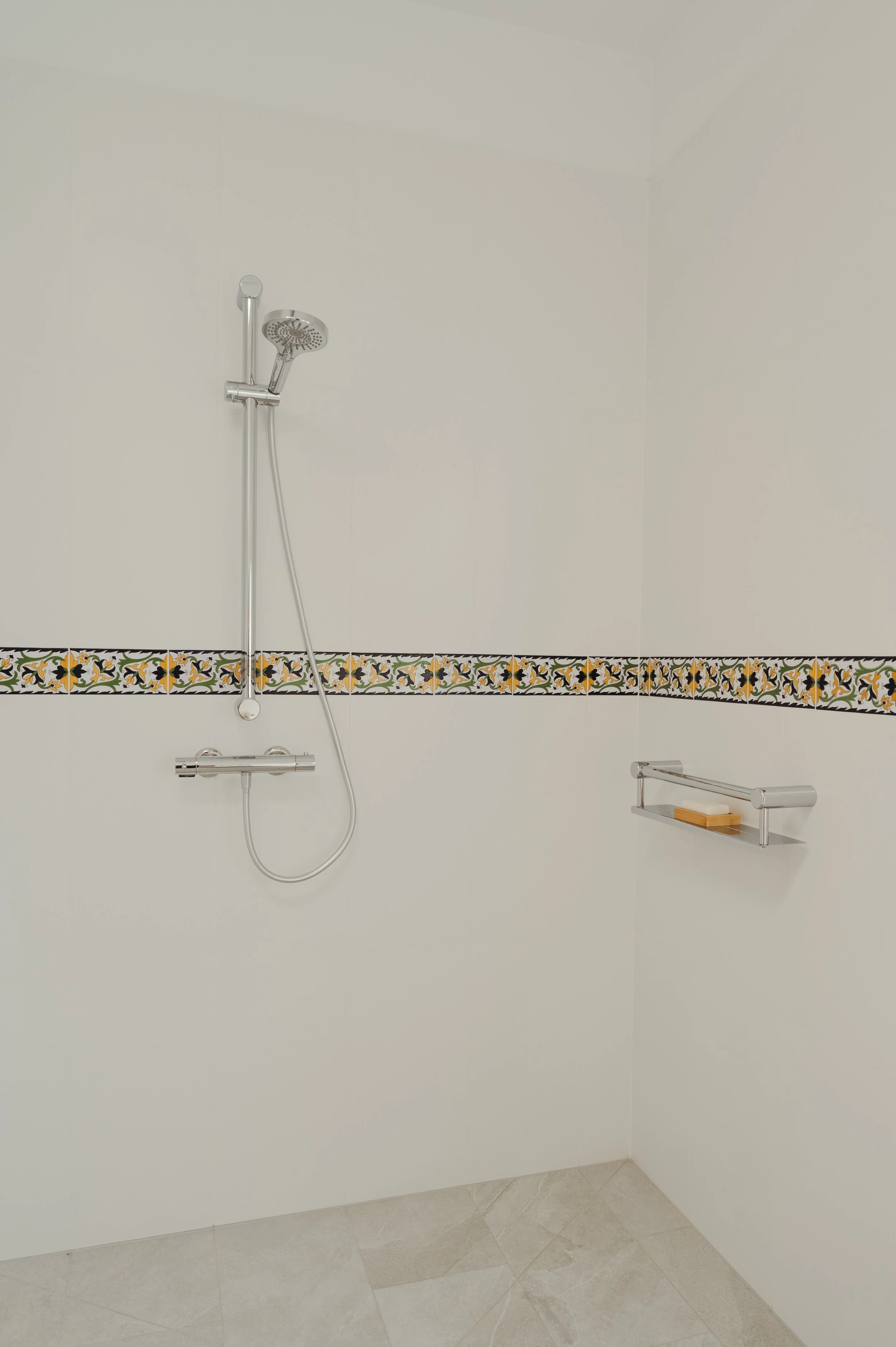 That meant creating a space with generous circulation, a comfortable shower entry, and fixtures positioned to support mobility and ease of use — all while maintaining a calm, traditional/modern aesthetic.
